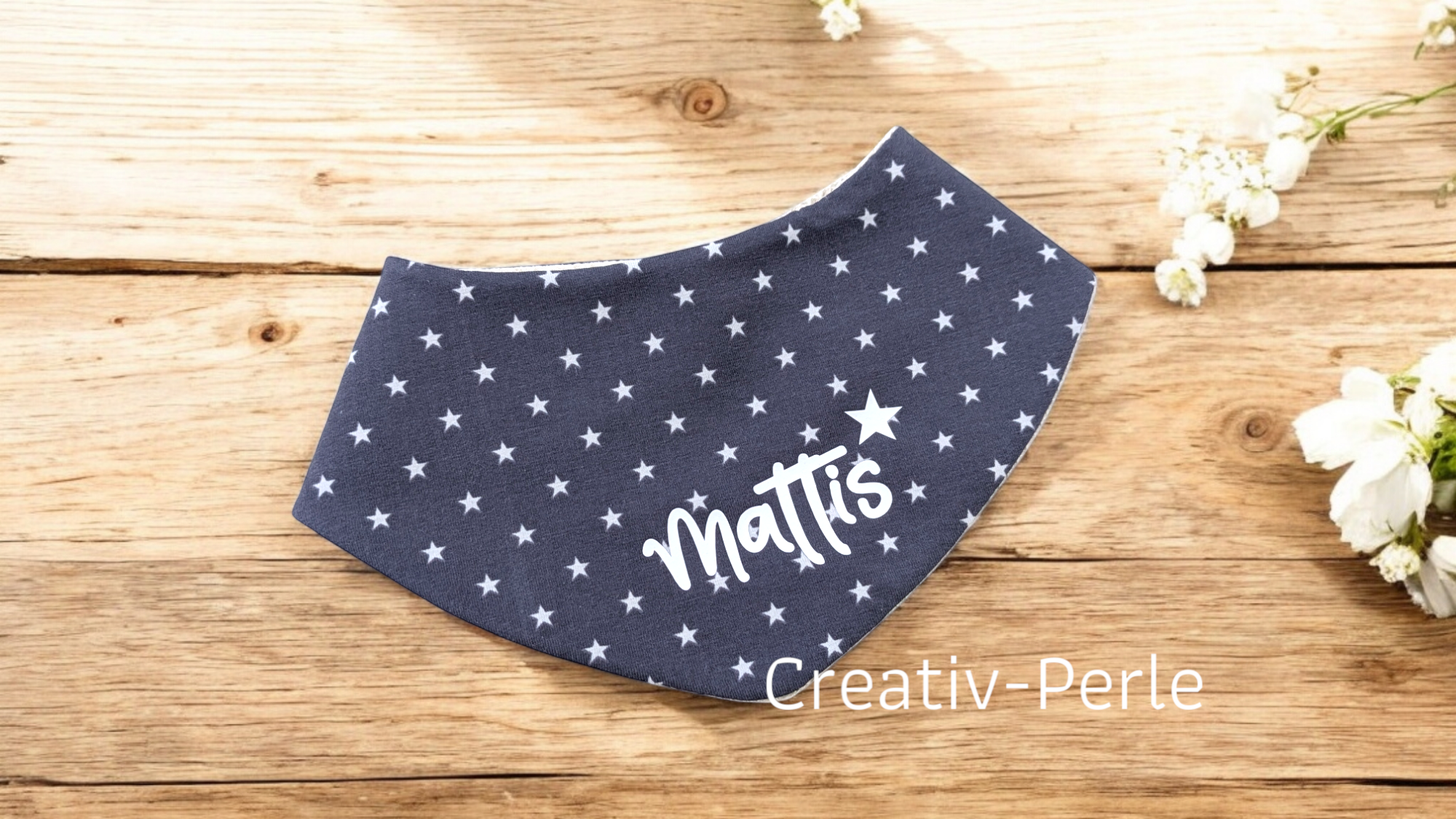 Halstuch mit Namen des Kindes, ein persönliches Geschenk zur Geburt, Taufe und jeden weiteren festlichen Anlass.